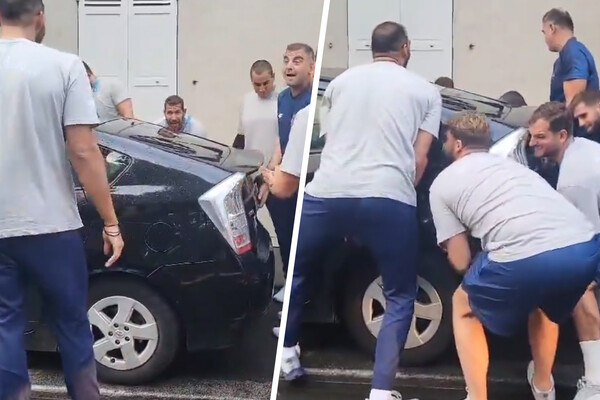 Спортсмены не растерялись и решили справиться с проблемой своими силами, не дожидаясь помощи. Они вышли из автобуса и попросту передвинули машины, мешавшие проезду.