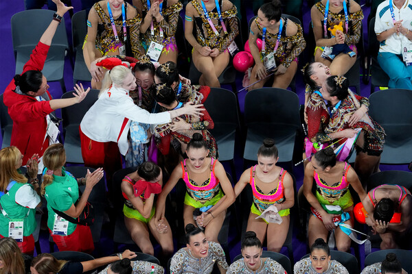 Сборная Китая по художественной гимнастике завоевала золото в групповом многоборье с результатом 69,800 балла. Причем тренером команды является россиянка Анастасия Близнюк.