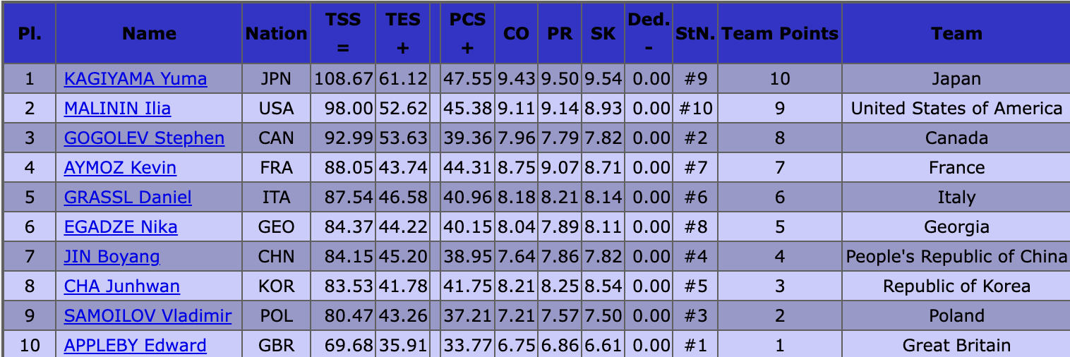 Итоги короткой программы мужчин (нажмите на картинку, чтобы увидеть полностью):