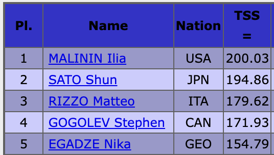 Итоги произвольной программы мужчин (кликните на картинку):