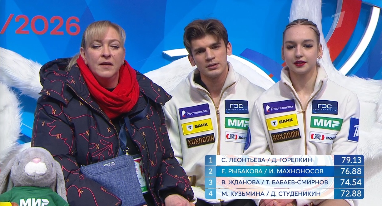 79,13 получили Леонтьева и Горелкин и уверенно вышли на первое место! И по технике, и по компонентам!