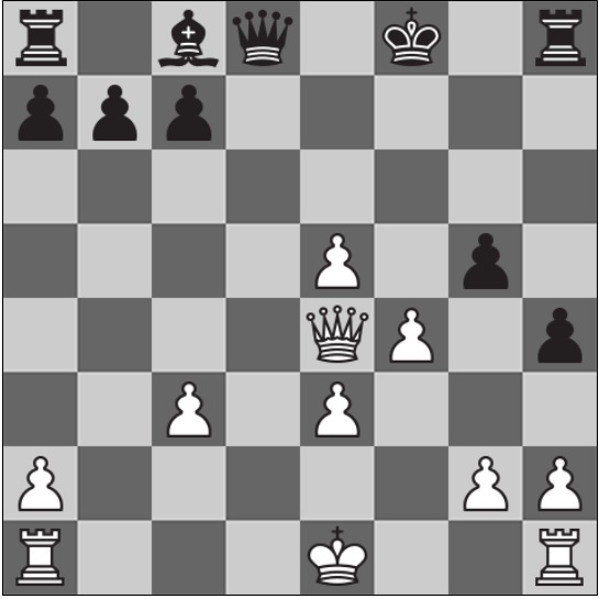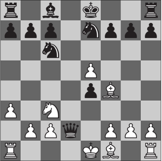 У Синдарова и Прагнанандхи равная позиция. 7.e3 Ne4 8.Qc2 g5 9.Bg3 h5 10.Bd3 h4 11.Bxe4 dxe4 12.Qxe4+ Kf8 13.Be5 f6 14.Nxg5 Bxc3+ 15.bxc3 Nxe5 16.dxe5 fxg5 17.f4