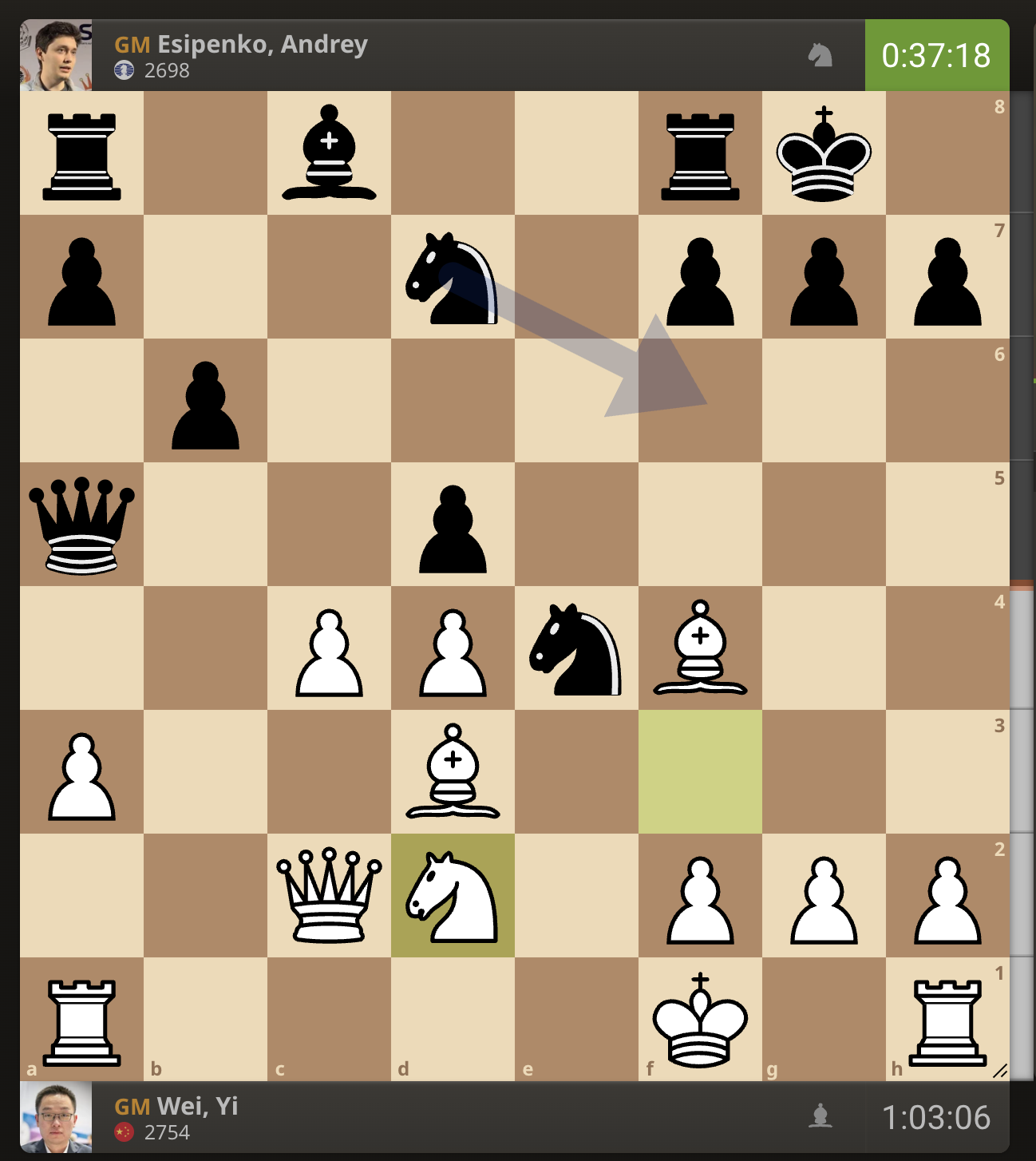 Есипенко отправил ферзя на f6.