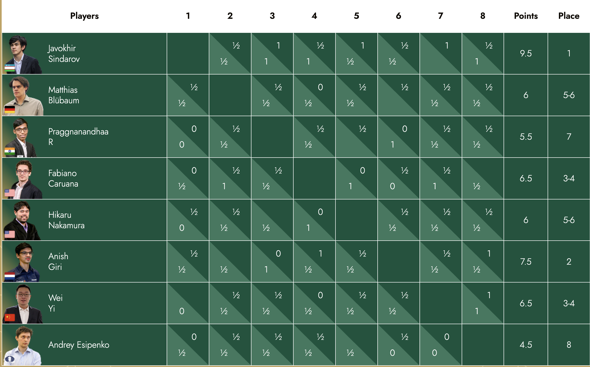 Синдаров сыграл вничью с Анишем Гири, и это позволило ему гарантировать себе первое место в турнирной таблице.