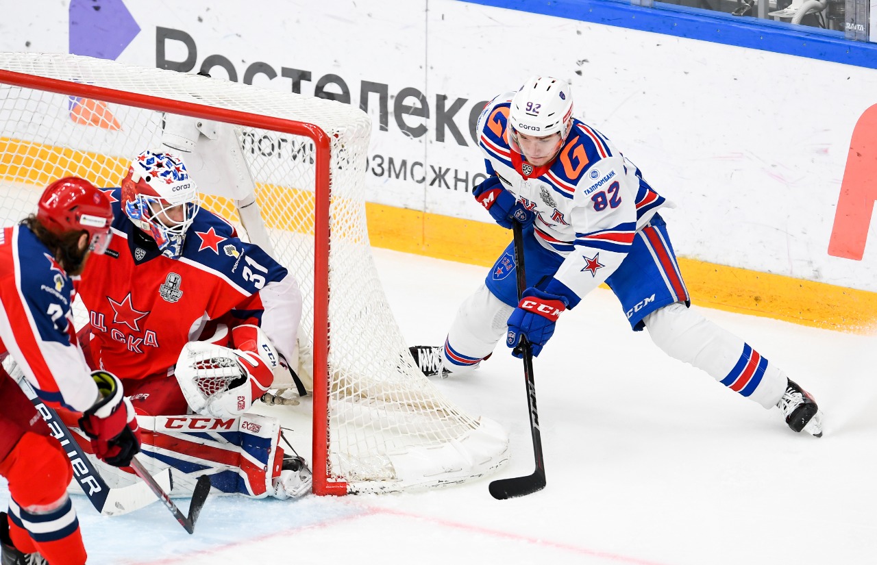 Прозвучала сирена на перерыв! Главным героем первого периода стал Владислав Каменев, оформивший дубль! СКА на это пока ничем не ответил, 2:0. Ждём вторую двадцатиминутку армейского дерби!