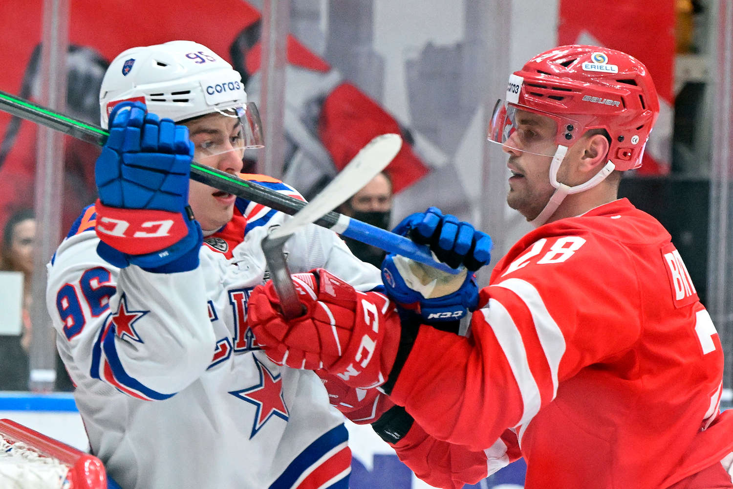 Последняя минута прошла в атаке «Спартака». Старались красно-белые доставить шайбу на пятак, но армейские защитники все же не позволили. Сирена на перерыв.