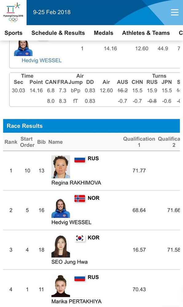 Российские фристайлистки были внесены официальным сайтом Олимпиады в протокол соревнований квалификации в могуле под флагом России, сообщает RT.