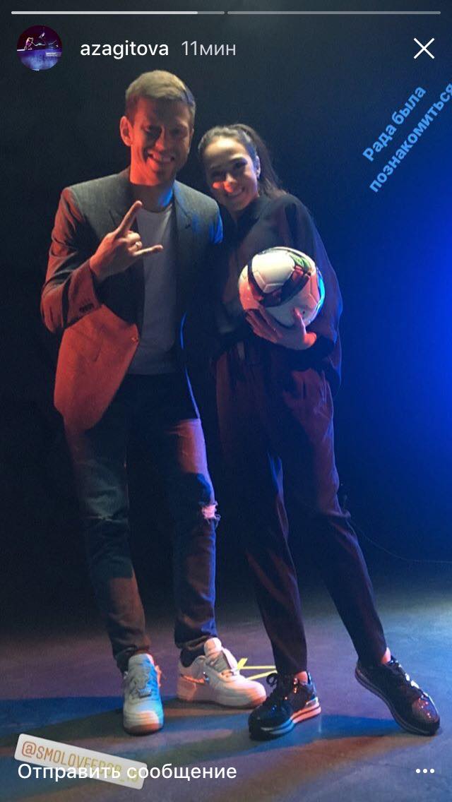 Олимпийская чемпионка по фигурному катанию Алина Загитова выложила в своем инстаграме фотографию с нападающим московского «Локомотива» Федором Смоловым, сообщает «Советский спорт».