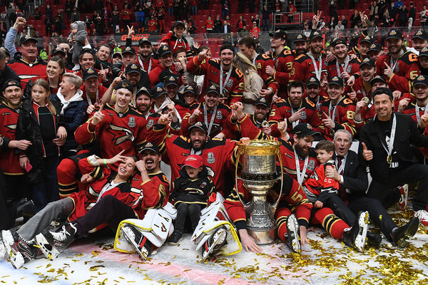 Болельщики омского «Авангарда» встретили команду в Омске и отпраздновали победу клуба в плей-офф Континентальной хоккейной лиги (КХЛ).