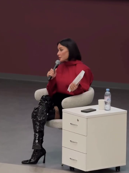 Тина Канделаки вышла на публику в юбке и лаковых ботфортах