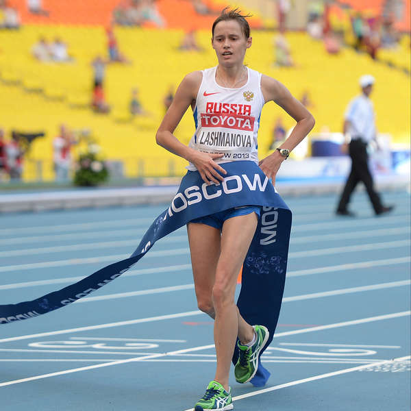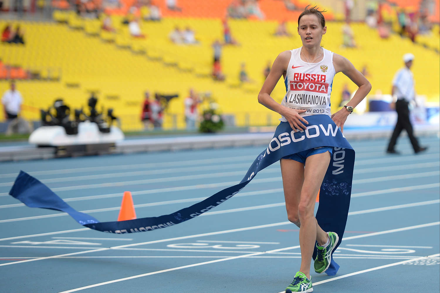 На Играх в Лондоне Лашманова завоевала золото на дистанции 20 км. Также она является победителем чемпионата мира-2013 в Москве. Обе эти медали, в соответствии с заявлением, спортсменка потеряет.