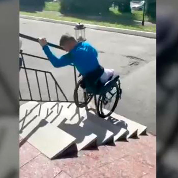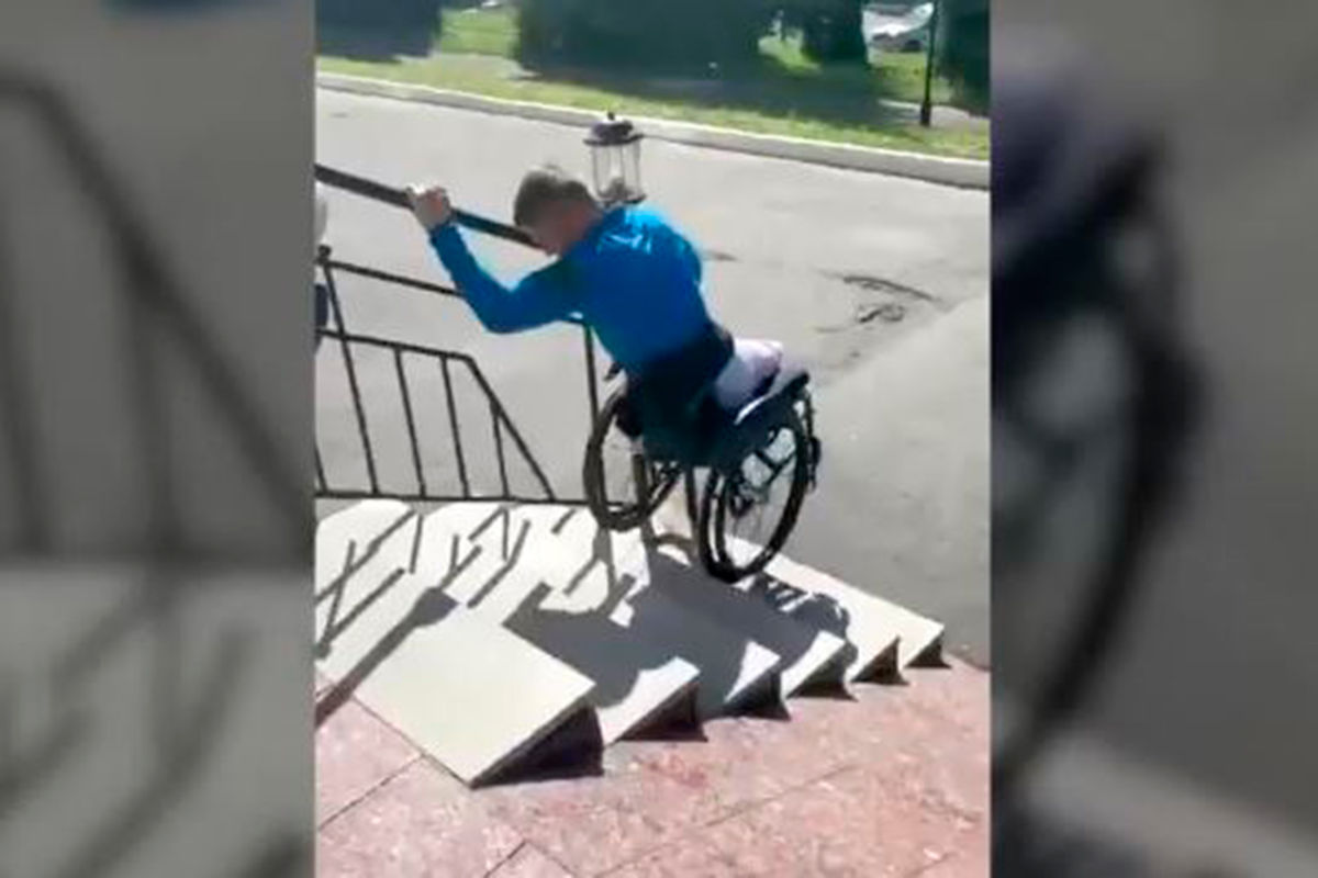 В прокуратуре отметили, что из видеозаписи следует , что пандус-скат, расположенный на лестнице, установлен под большим углом и фактически не приспособлен для самостоятельного подъема лиц с поражением опорно-двигательного аппарата.