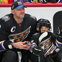 Сергей Овечкин нанес бросок по воротам Роберто Луонго во время конкурса буллитов, причем Овечкин-младший выкатился на знаменитого в прошлом канадского вратаря втроем со своим отцом и его давним соперником из «Питтсбург Пингвинз» Сидни Кросби.