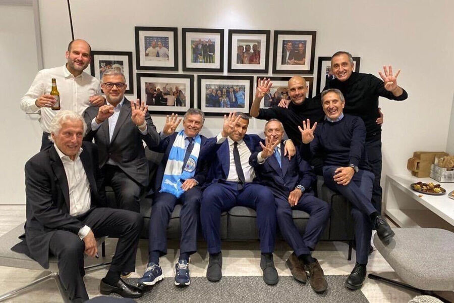 На фотографии каталонский специалист и председатель совета директоров клуба находятся в одном из помещений стадиона «Этихад» в окружении гостей и демонстрируют четыре пальца. Этот снимок в своих социальных сетях опубликовал бывший президент Аргентины Маурисио Макри.
