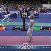 27 июля украинка Ольга Харлан победила россиянку Анну Смирнову со счетом 15:7 в рамках 1/32 финала чемпионата мира в Милане. После победы украинка отказалась от обязательного рукопожатия и покинула дорожку. Спортсменка была дисквалифицирована на личный турнир, однако смогла принять участие в командных соревнованиях. Позже ее дисквалификация была отменена. Сборная Украины в матче за бронзовые медали уступила Южной Корее со счетом 32:45.