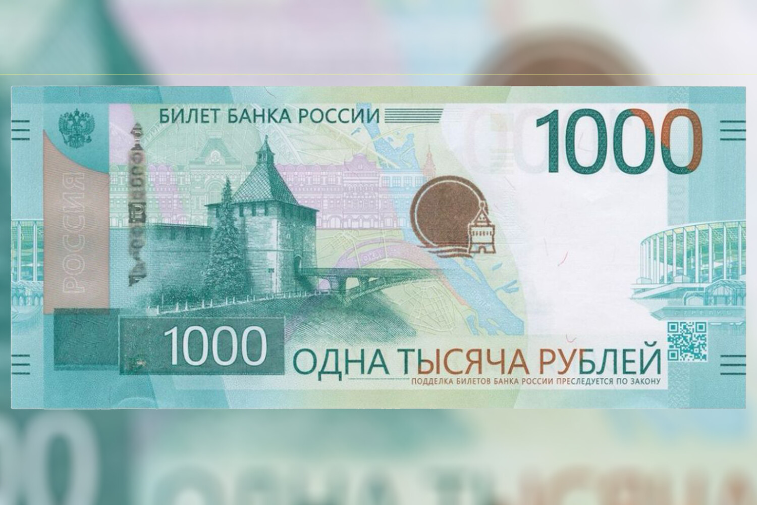 16 октября Банк России представил обновленные банкноты номиналом 5000 и 1000 рублей. Посвященная Нижнему Новгороду и Приволжскому федеральному округу банкнота в 1000 рублей сохранила привычную зелено-голубую цветовую палитру. На лицевой стороне купюры изображены Никольская башня Нижегородского кремля и стадион «Нижний Новгород».