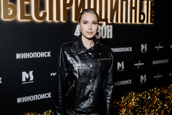 Фигуристка посетила презентацию «Беспринципных-4» в бар-клубе Community. По сюжету сериала главный хранитель светских секретов Славик (Павел Деревянко) собирает весьма необычные истории о своих знакомых по Патрикам.