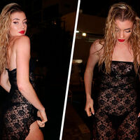 На снимке спортсменка позирует в черном прозрачном платье