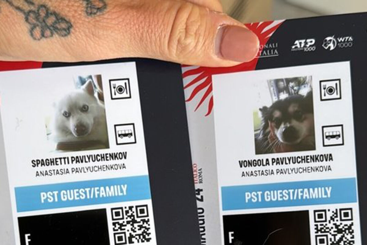 На аккредитациях указаны клички собак — Спагетти и Вонгола Павлюченковы, заявленных в качестве гостей/семьи российской теннисистки. Собакам можно заходить не только на территорию проведения соревнований, но и даже на центральный корт.