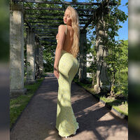 На снимке девушка позирует в зеленом платье с открытой спиной.