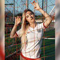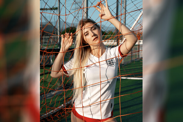 Ева Элфи сфотографировалась в футболках сборных Англии, Германии, Португалии, Испании, Италии, Бельгии и Франции.