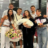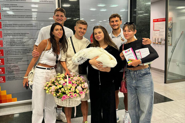 На выписку в роддом вместе с Обляковым приехали его одноклубники — защитник Игорь Дивеев и нападающий Федор Чалов.