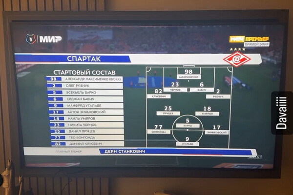 В Stories футболист выложил фото из отеля, где на экране телевизора шел матч «Спартака» против самарских «Крыльев Советов» в третьем туре Российской премьер-лиги (РПЛ).