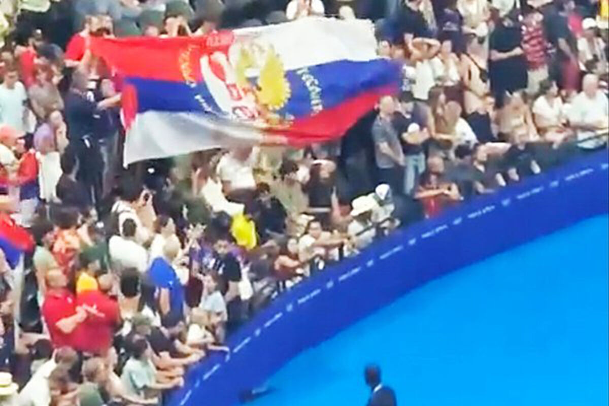 Болельщики вывесили российско-сербский флаг на финале по водному поло ОИ-2024
