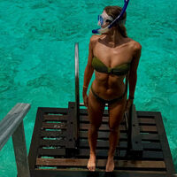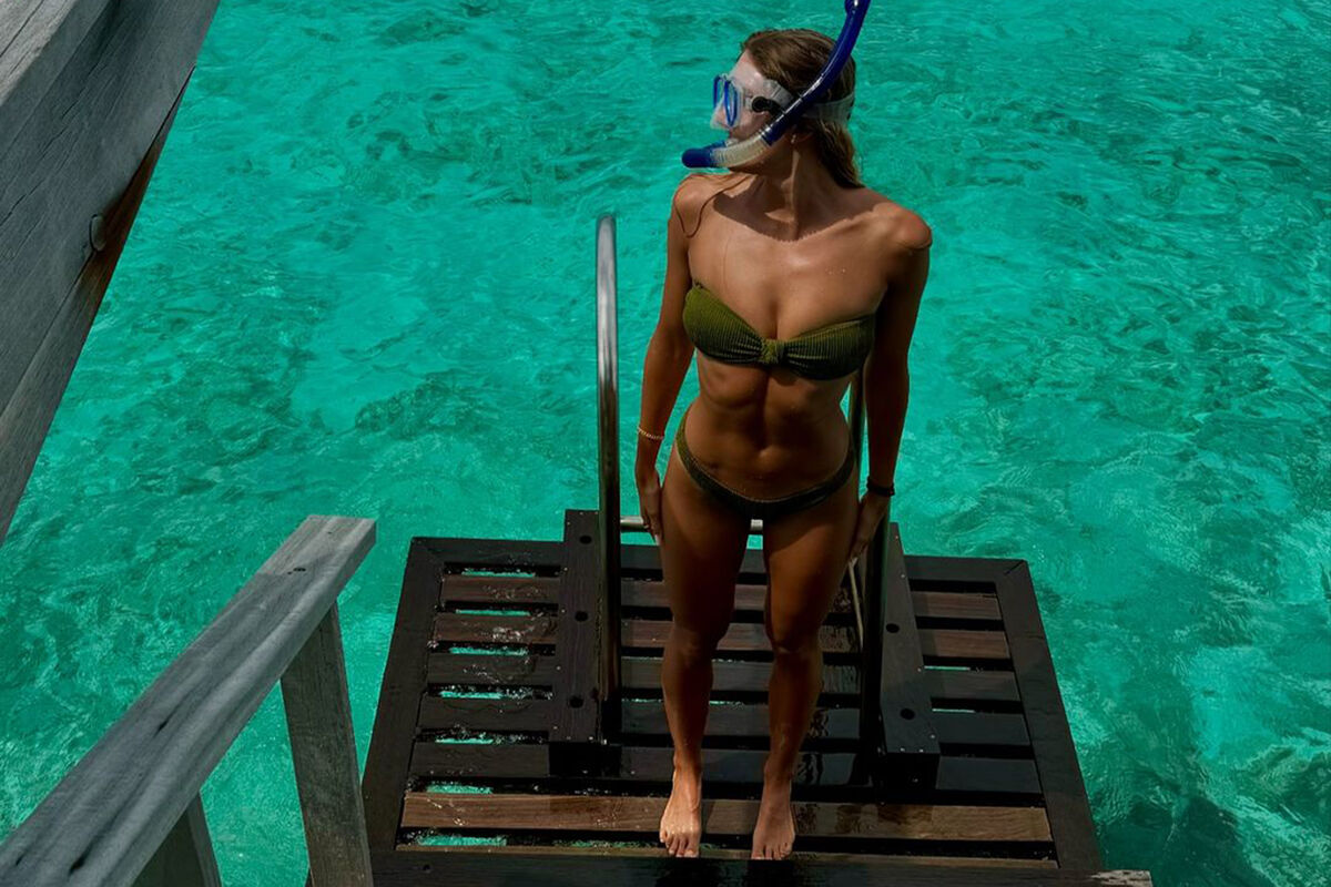 На ней спортсменка запечатлена в бикини.