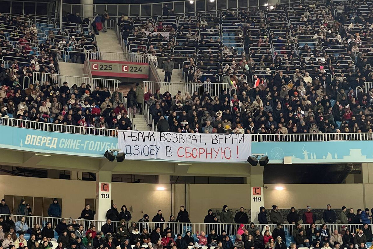 «Болельщики сегодня вывесили баннер с призывом вернуть Артема Дзюбу в сборную. Надо ли прислушиваться к их мнению?» — спросили Карпина.