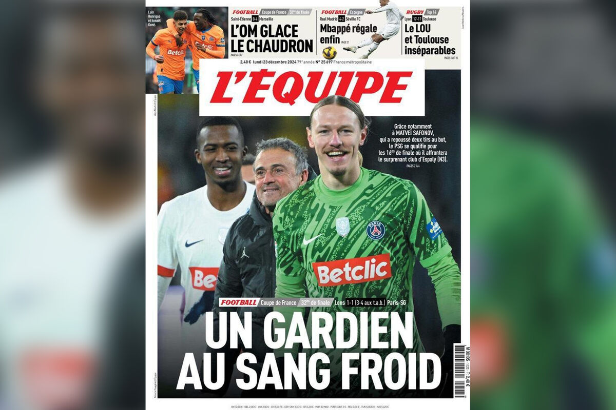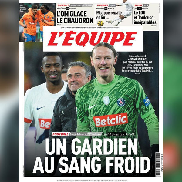 Российский вратарь «ПСЖ» Матвей Сафонов после матча 1/32 финала Кубка Франции с «Лансом» попал на обложку авторитетного французского издания L'Équipe.