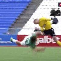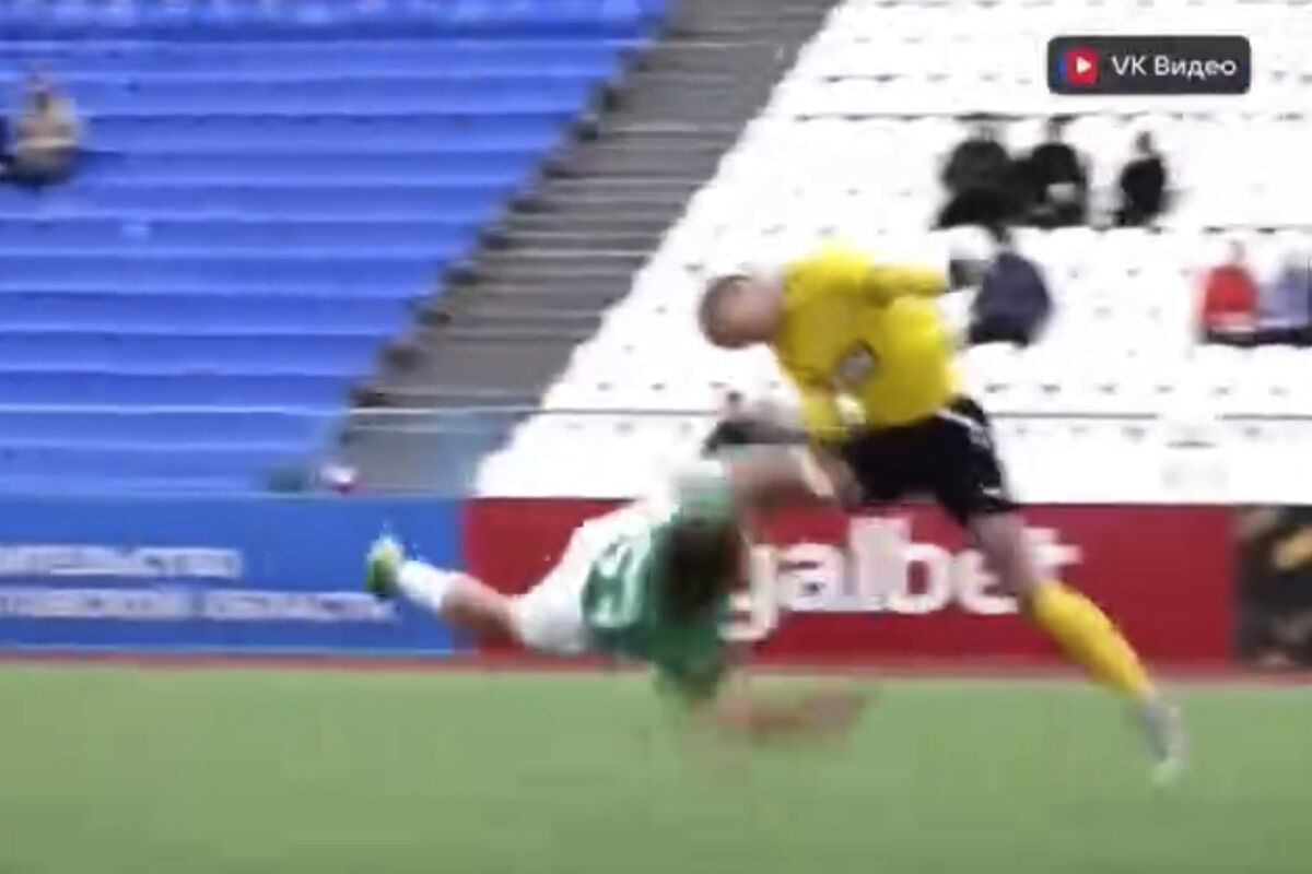 Во время футбольного матча Первой лиги между саратовским «Соколом» и московской «Родиной» головами столкнулись футболист саратовцев Никита Карабашев и игрок «Родины» Георгий Юдинцев.