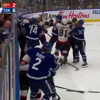 Массовая драка произошла на последней минуте первого матча серии плей-офф НХЛ между «Торонто Мейпл Лифс» и «Оттава Сенаторз».