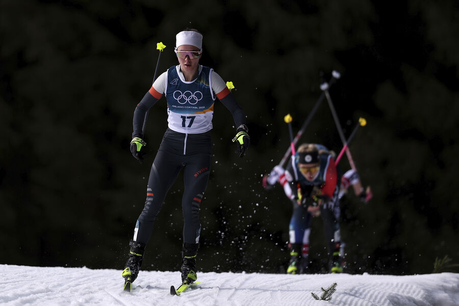 Российская лыжница Дарья Непряева упала в скиатлоне в лыжных гонках на дистанции 10+10 км в рамках зимних Олимпийских играх — 2026.