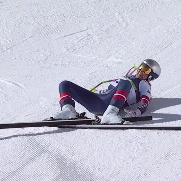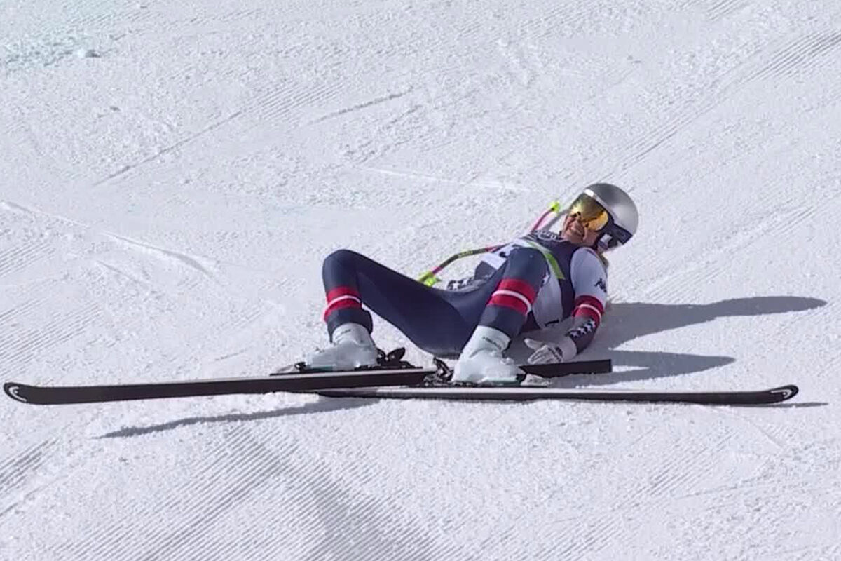 Спортсменка зацепила флаг, не удержала равновесие и рухнула на трассу. Сейчас соревнования прерваны, за Вонн прилетел медицинский вертолет, в скором времени спортсменку доставят в больницу.