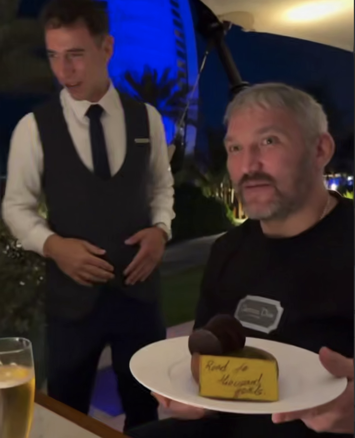 Российский нападающий и капитан «Вашингтон Кэпиталз» Александр Овечкин, находясь в отпуске в Дубае в период паузы в Национальной хоккейной лиге (НХЛ), получил в одном из ресторанов торт от шеф-повара.