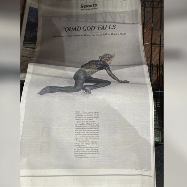 Американская газета New York Times после произвольных программ мужчин-одиночников на зимних Олимпийских играх — 2026 посвятила целую страницу неудаче американца Ильи Малинина.