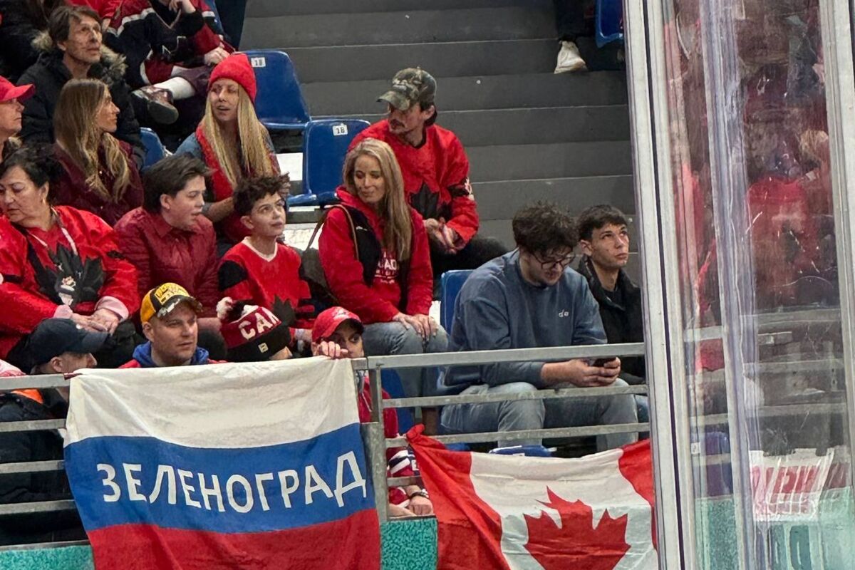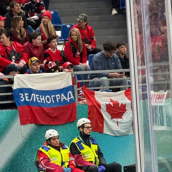 На полотнище, которое болельщик, одетый в форму московского «Спартака», разместил рядом с канадским флагом, была нанесена надпись «Зеленоград». Вскоре подошел сотрудник службы безопасности с просьбой убрать флаг.
