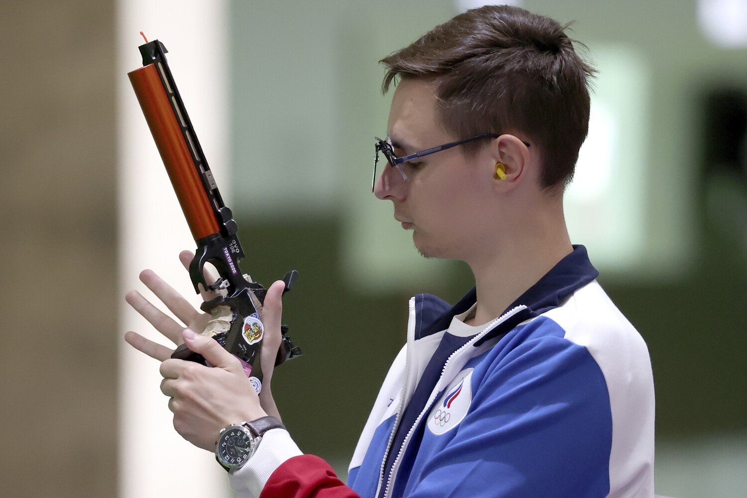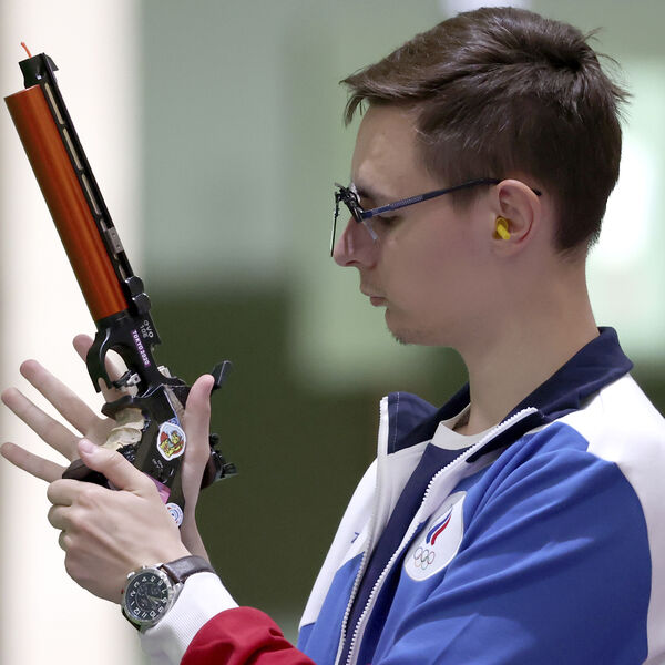 Он победил в стрельбе из пневматического пистолета с 10 м, набрав 242,2 балла.