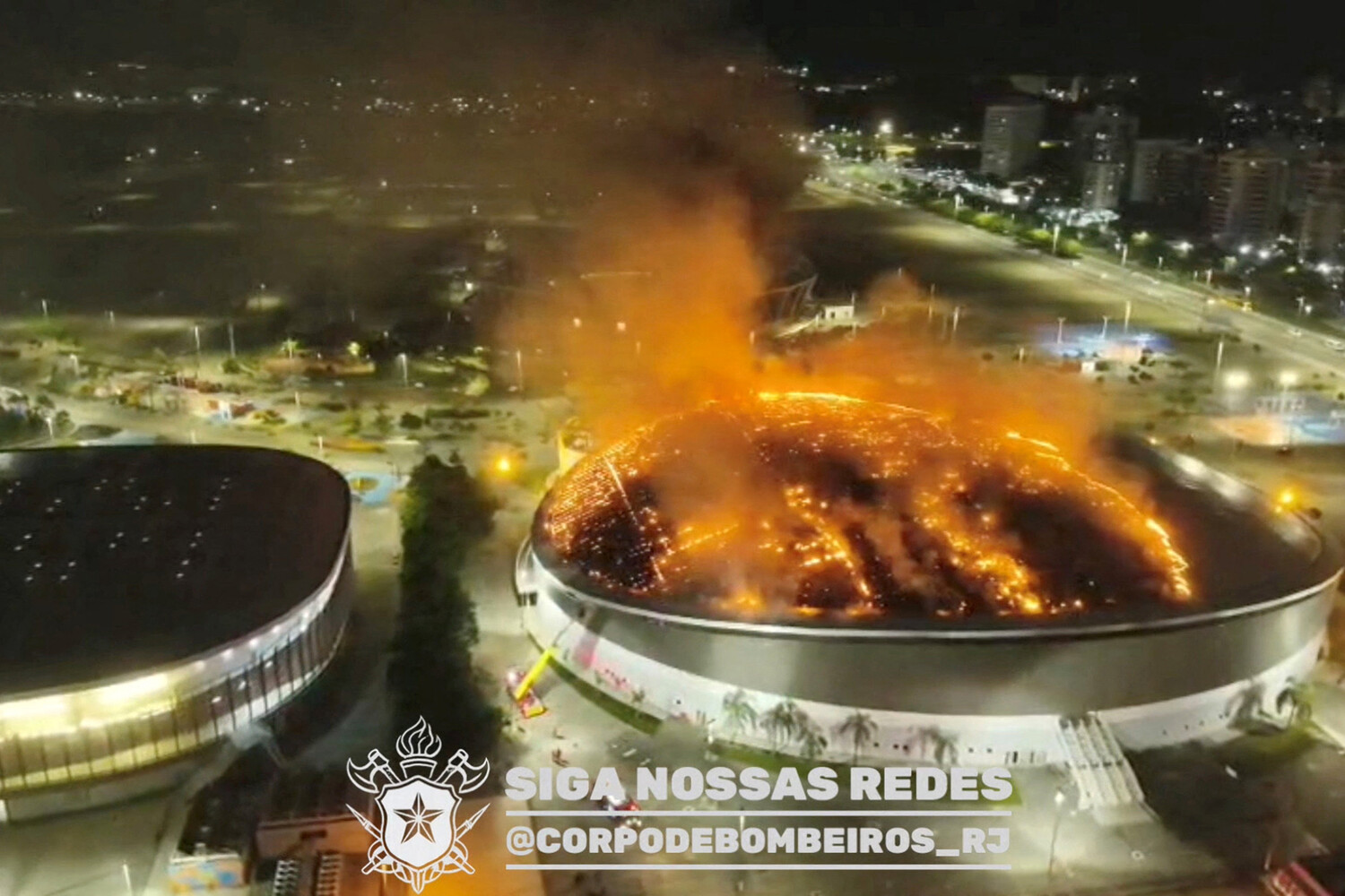 Пожар начался ночью 8 апреля, когда на арене не было атлетов и болельщиков. Крыша стадиона серьезно пострадала от огня,