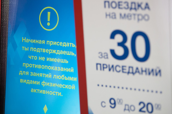На станции метро «Выставочная» заработал аппарат, позволяющий купить билет на одну поездку за тридцать приседаний. Билетный аппарат появился в рамках проекта «Олимпийские перемены», он будет работать до 3 декабря.