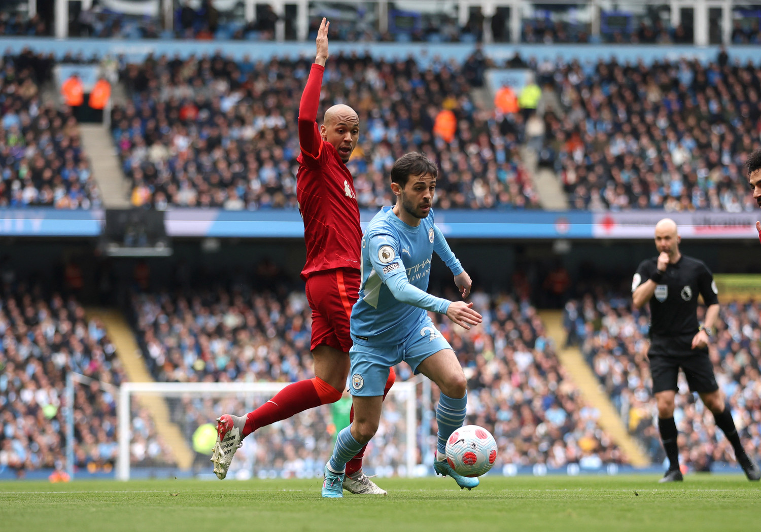 Де Брейне попытался выбить мяч из-под ног Фабиньо, но случайно ударил ему по ступне. Арбитр не стал давать желтую, но будет перспективный «стандарт».