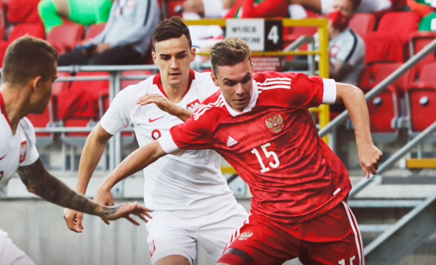 Первый матч с поляками состоялся почти аж год назад — в октябре 2019-го на арене в Екатеринбурге была зафиксирована результативная ничья (2:2). У российской команды голами отметились Даниил Уткин и Магомед-Шапи Сулейманов, а за польскую сборную отличился Патрик Климала. Также мяч в свои ворота срезал российский защитник из ЦСКА Игорь Дивеев.
