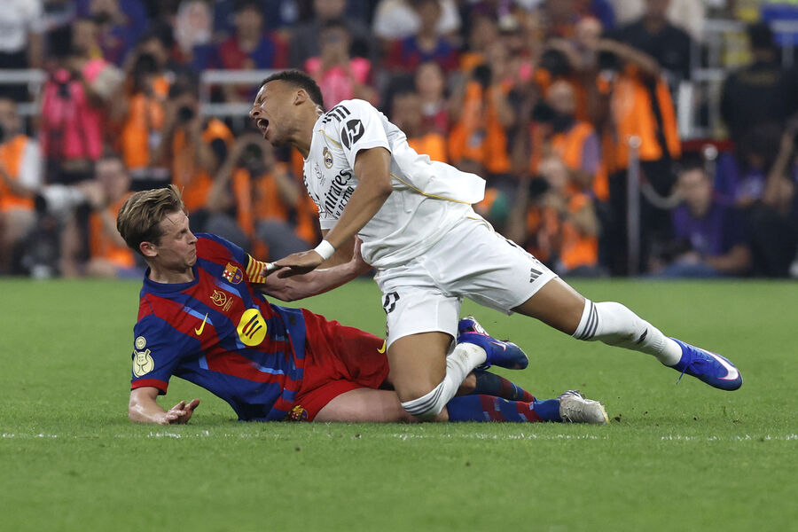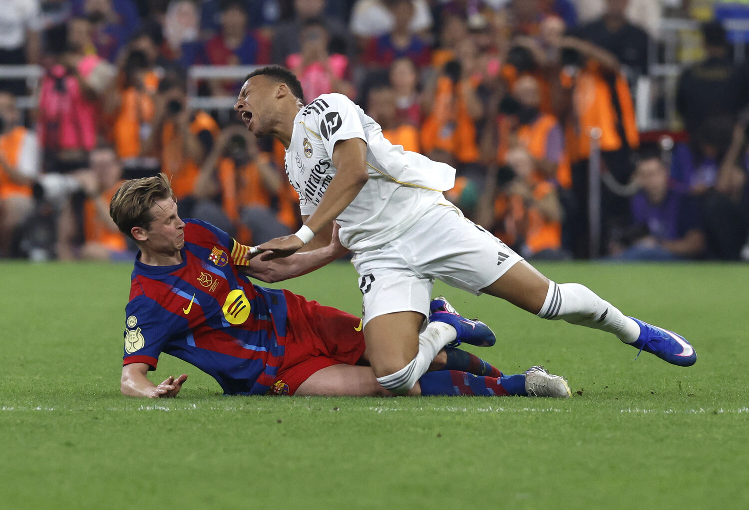 Де Йонг заработал опасный «стандарт» — он получил по ногам от Беллингема возле самой линии штрафной «Реала».
