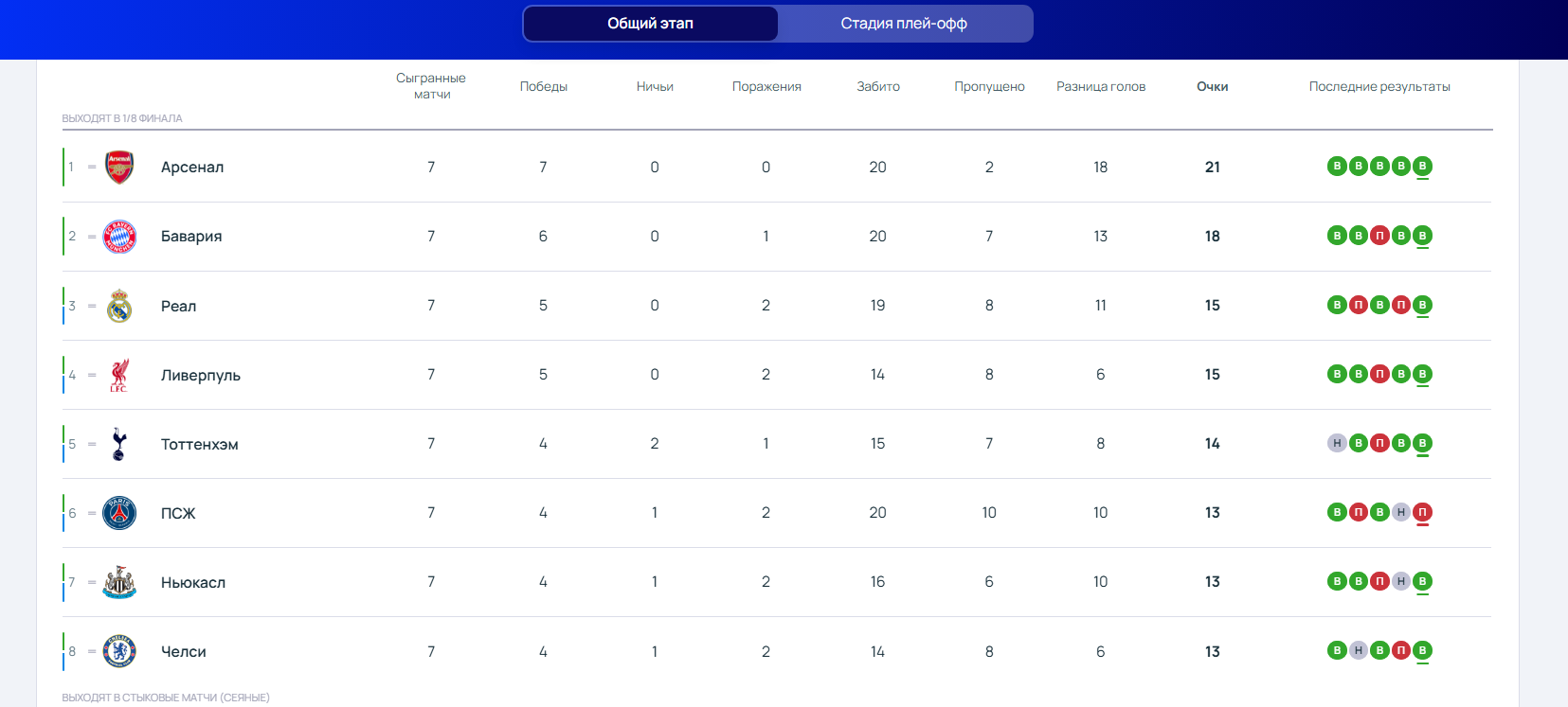В топ-8 положение дел после семи игр выглядит так: