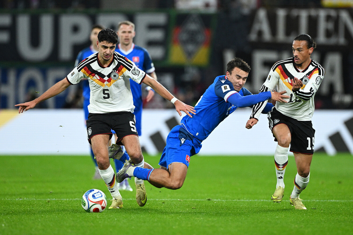 Сане высоко прессинговал и едва не накрыл голкипера Словакии, но Дубравка сыграл образцово хладнокровно и удачно, убрав немецкого вингера с дороги и отдав партнеру.