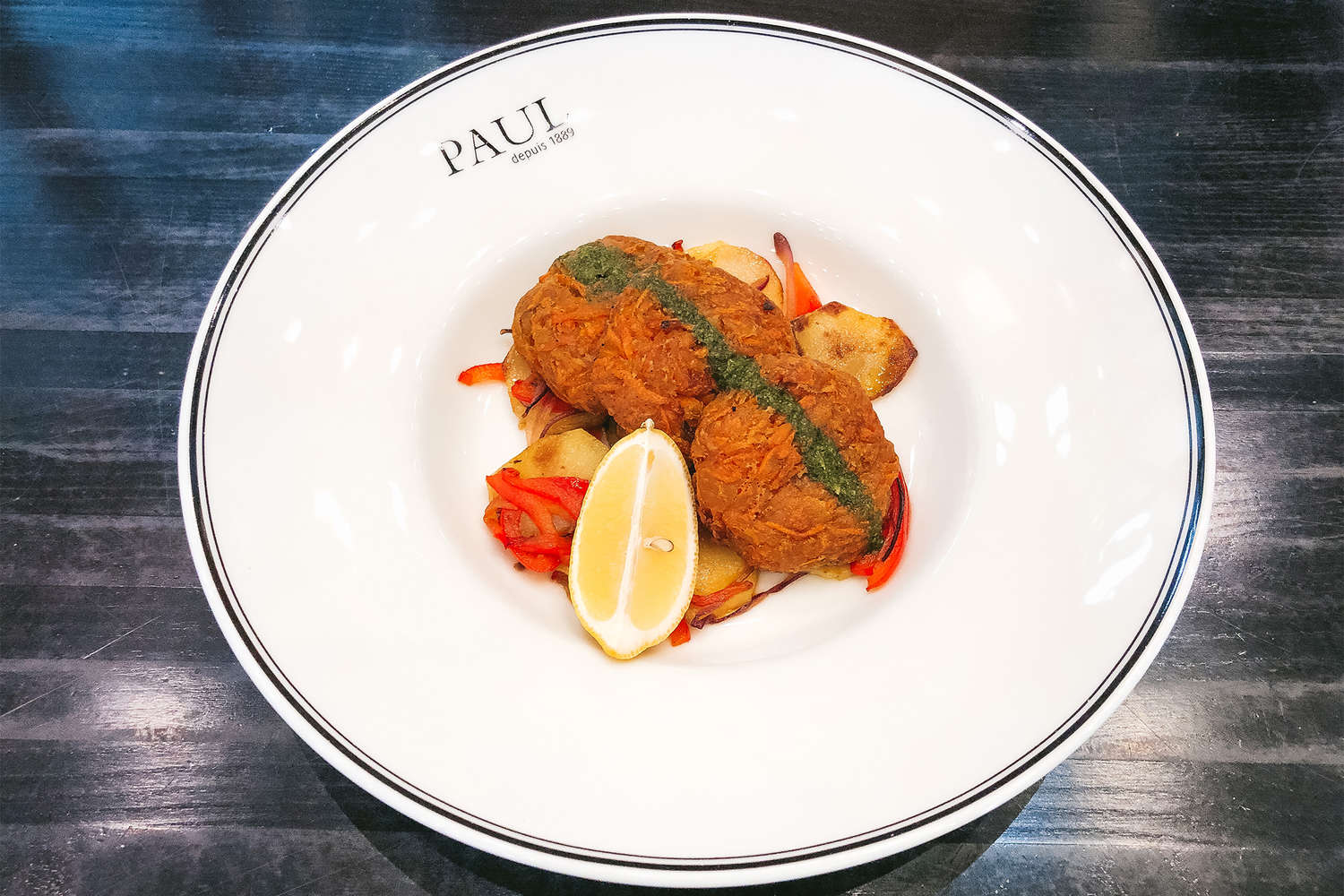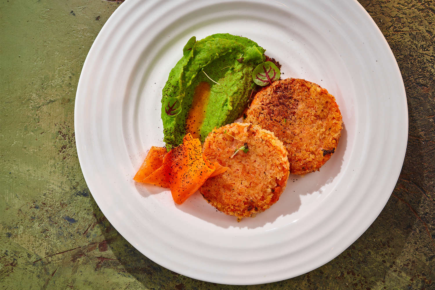 Шеф-повар ресторана Paul Сергей Чионов поделился рецептом морковных котлет с необычным гарниром из картофеля. Для приготовления котлеты потребуются 175 г моркови, 25 г манной крупы, 25 г пшеничной муки, 25 мл растительного масла, соль, перец. Для гарнира — 65 г картофеля, 30 г болгарского перца, 20 г красного лука, 5 мл растительного масла, чеснок, тимьян, орегано, петрушка, соль, перец.