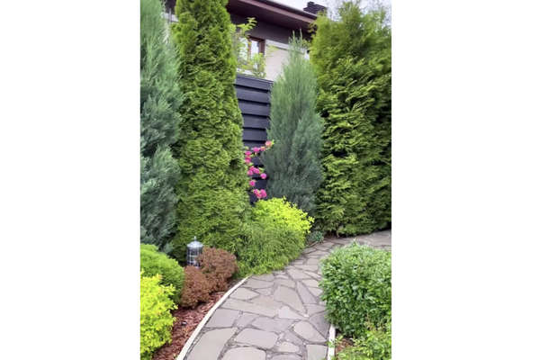«На участке мы видим не только лиственные, но и вечнозеленые растения: такое сочетание получило популярность в постпандемийные времена, когда люди начали проводить больше времени дома и необходимость в общении с природой стала больше. Ухоженная зеленая поляна, шатер — это отличное место как для спокойного отдыха, так и для шумных вечеринок. А самое большое преимущество: уход за таким садом весьма прост и не занимает много времени», — объяснила Карасаева.