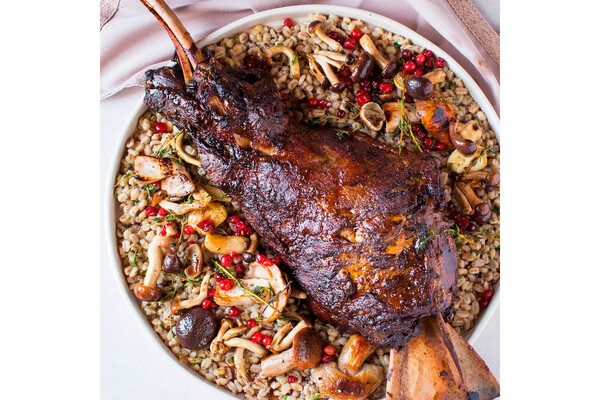 В качестве альтернативы гусю Гущин предложил подать к рождественскому столу томленую лопатку ягненка с перловкой, белыми грибами и брусникой.