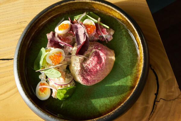 Бренд-шеф ресторана «Река» Александр Акимов поделился авторским рецептом салата оливье — его тоже можно приготовить к Рождеству. В версии шефа вместо вареной колбасы — мясо краба и красная икра, а майонез идет в равной пропорции со сметаной.